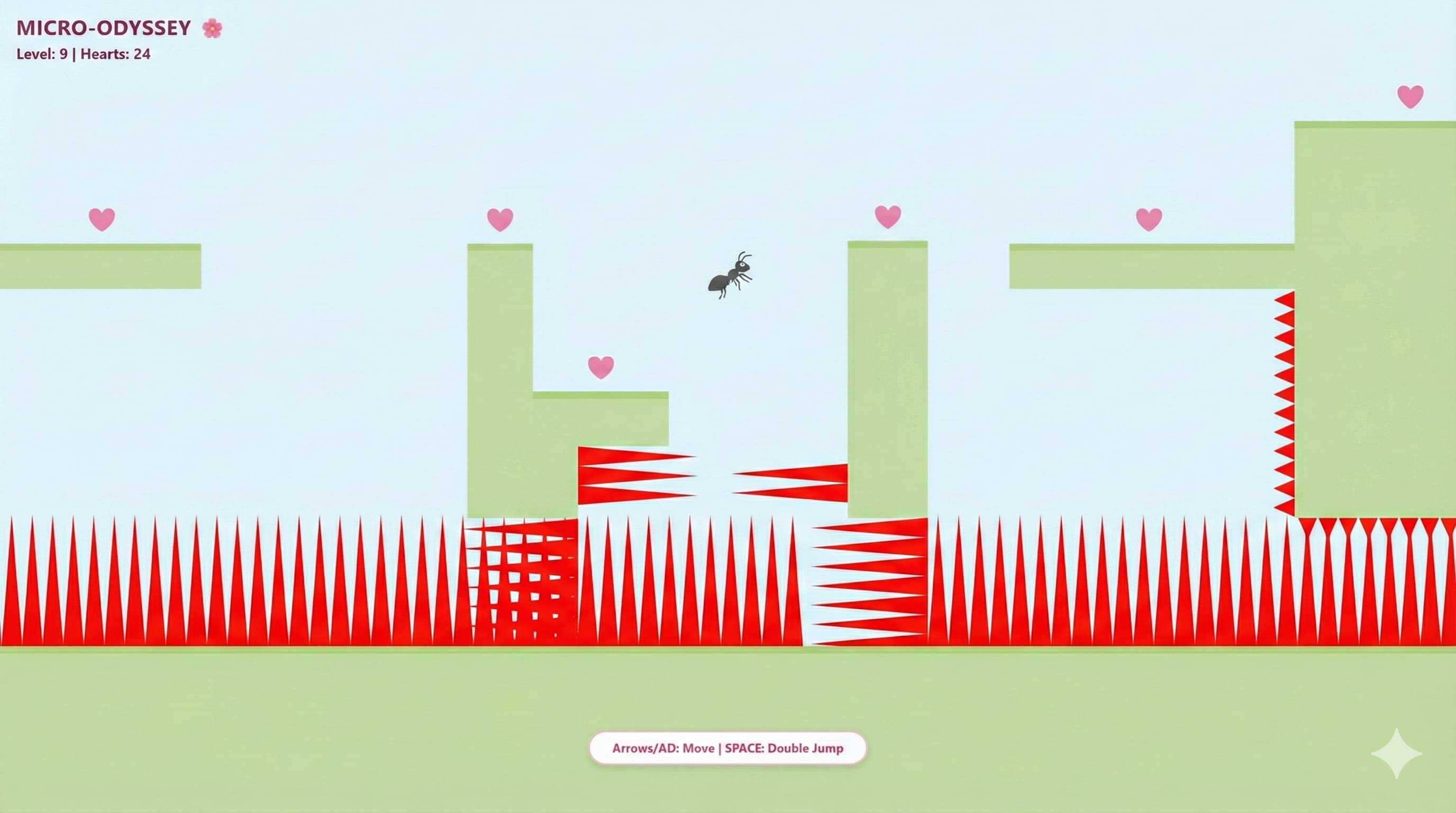 Ever wondered what the world looks like from a few millimeters off the ground? Step into the tiny feet of a brave ant in Micro-Odyssey, a fast-paced 2D platformer where a simple backyard feels like a vast, dangerous continent!